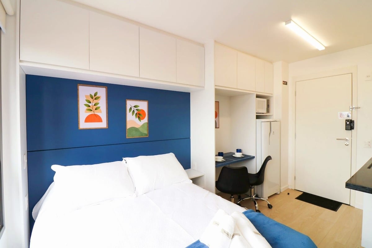 Studioleilighet med queensize-seng, 7 min Aero Congonhas/T-bane/butikk