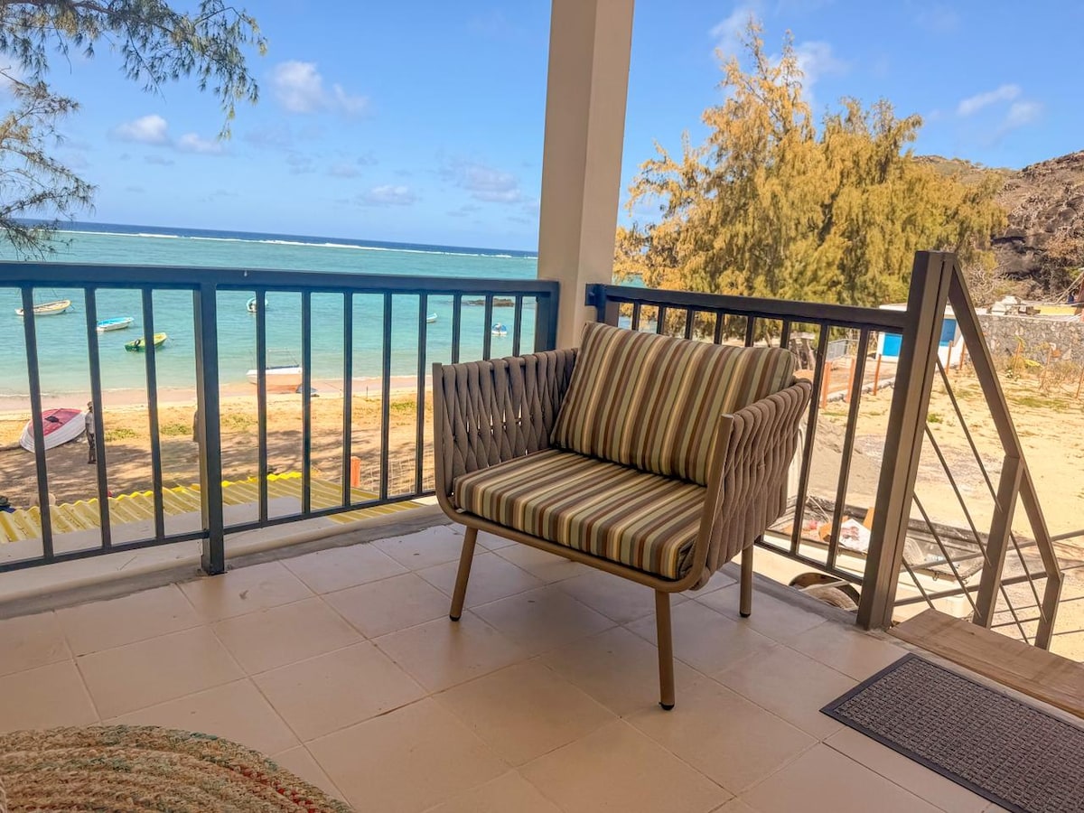 Détendez-vous dans ce logement calme et élégant. Appartement à l'étage avec entrée indépendante. Parking privé. Face à l'océan, vous pourrez y admirer de magnifiques coucher de soleil. Pour votre bien-être, ce logement est NON FUMEUR Chaque chambre est équipée d'une salle de bains, WC, lavabo, clim, TV et frigidaire Nous sommes à 1 km de Baie aux Huîtres et à 3 kms de Port Mathurin environ. Arrêt des bus à 50 m. Transfert aéroport 10 €