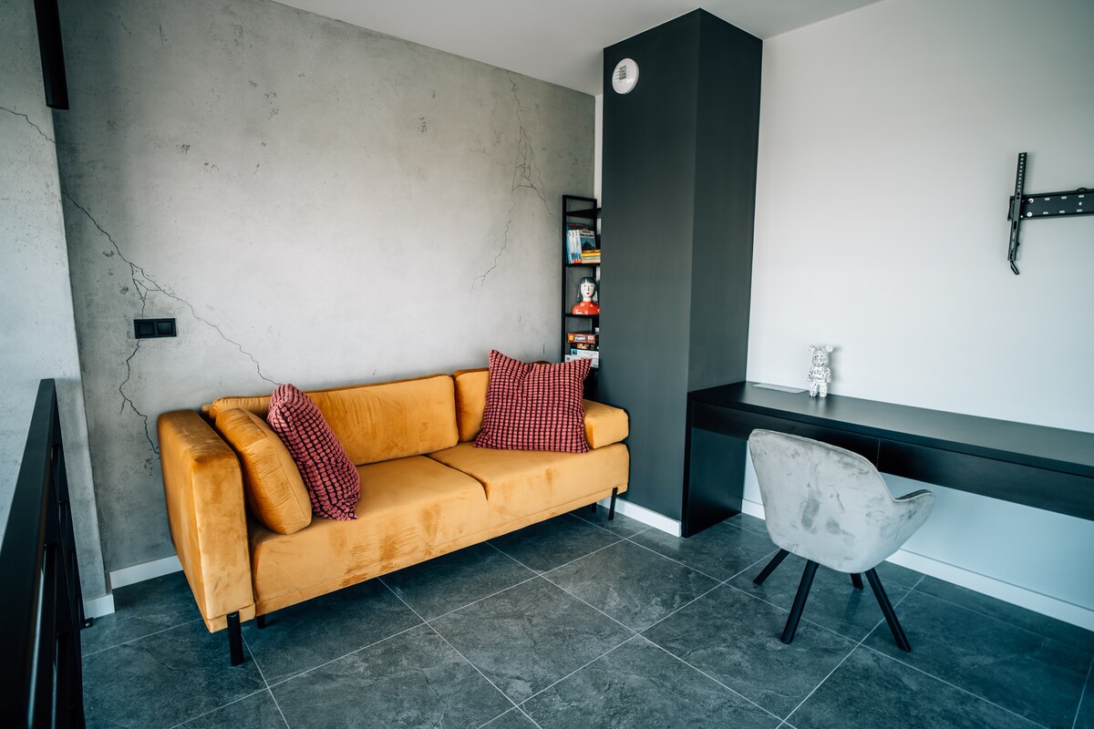 En koselig og fullt utstyrt leilighet i Szczawno-Zdrój, et av de vakreste feriestedene i Polen, i hjertet av Sudetes. Du kan parkere på eiendommen samt på gaten, klimaanlegg og en utendørs celle for sykler og barnevogner. Stue, fullt kjøkkenkrok, oppvaskmaskin, TV-kaffemaskin, garderobe, arbeidsplass, balkong, seng, sofa. I nærheten av spa-parken, Książ slott, den gamle gruven. Inn- og utsjekking er en egen melding med koden. Vi snakker engelsk!