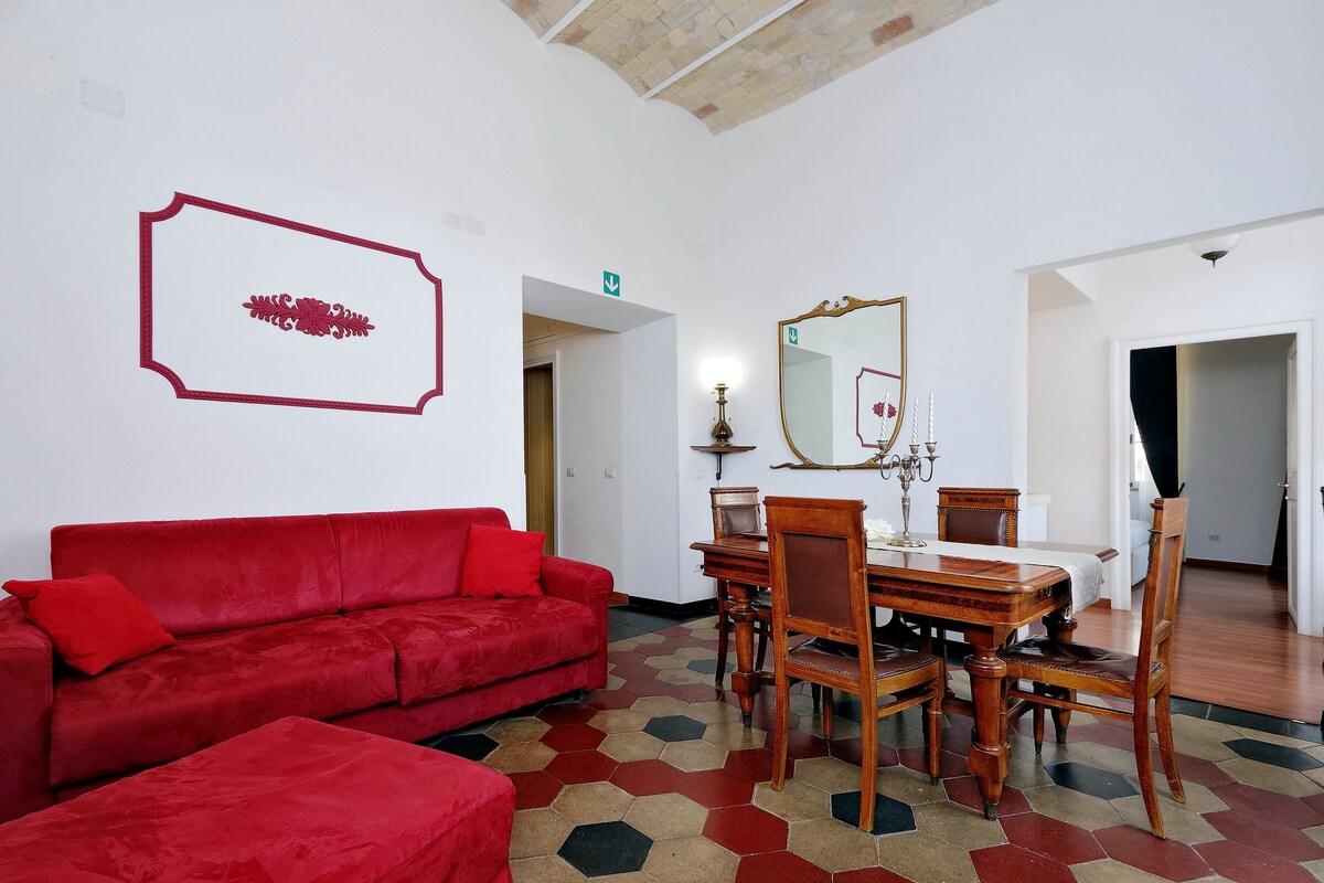 Bo i hjertet av Monti på den ikoniske Via dei Serpenti! Bare 5 minutter fra Colosseum. Monti Charm er et fristed i en bygning fra det 18. århundre med en sjelden luksus: en privat terrasse. Nyt ultraraskt trådløst nettverk (287 Mbps) og Netflix. Perfekt for par, familier og folk som jobber hjemmefra. Opplev det autentiske Roma blant håndverksbutikker og vinbarer, og slapp av i stillheten på den private gårdsplassen. Innsjekking uten vert og klimaanlegg. Opplev din romerske drøm i byens kuleste bydel!