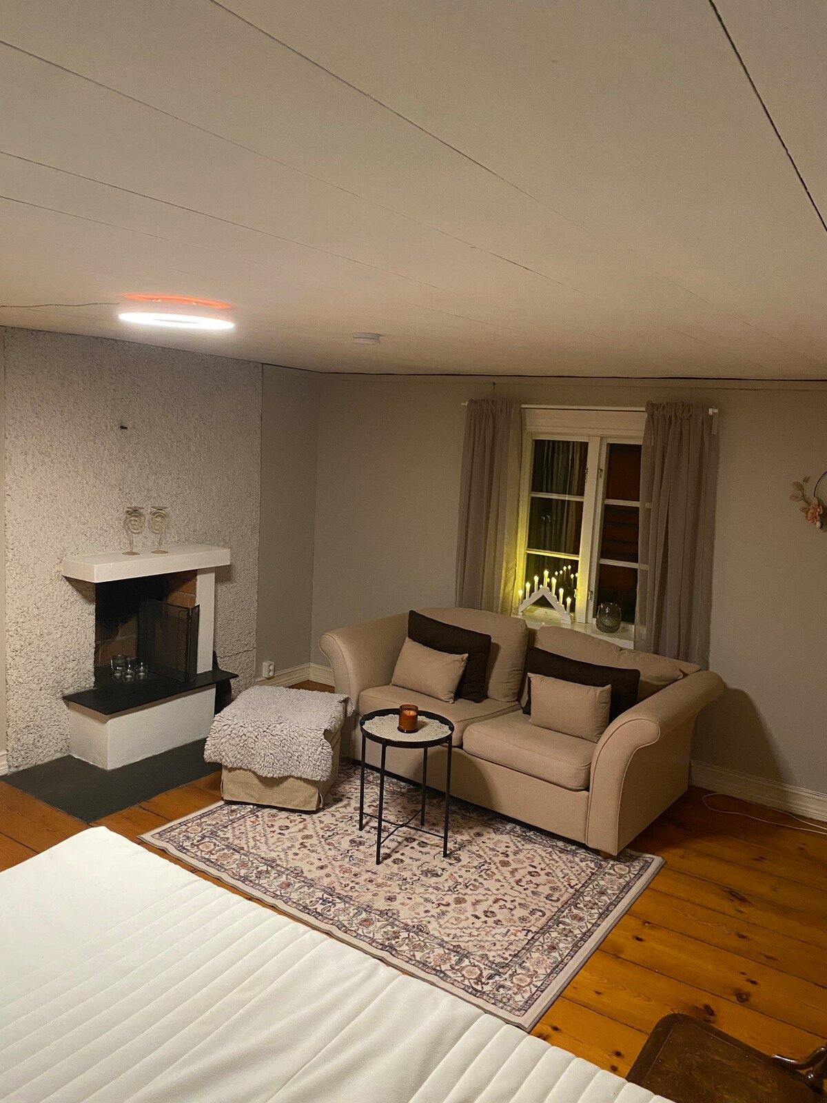 Velkommen til den store leiligheten vår på 140 kvadratmeter. Beliggenheten er perfekt, bare 10 km fra Romme Alpin og 8,5 km fra Borlänge C! Huset er omgitt av vakker natur og historiske Rommehed. Sengetøy, håndklær, såpe og toalettpapir er inkludert. Det er også en annen leilighet i huset med fire rom til leie hvis dere er en stor gruppe. Du finner annonsen for den på profilen min. Hvis du trenger flere senger, kan vi ordne det mot en ekstra kostnad, men det er kun ett bad. Kontakt oss