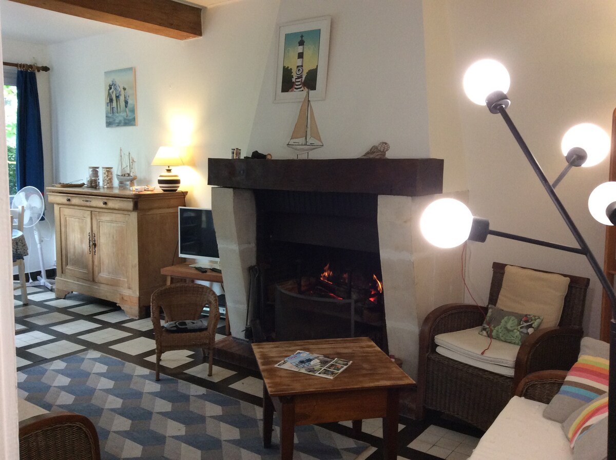 Ideelt plassert midt på Ronces les Bains, 300 meter fra stranden, i nærheten av markedet (50 m), sykkelsti 200 m for å få tilgang til den ville kysten. Hus på 125 m2 (renovert) for 10 personer, ideelt for familie(er) med barn(ren) på lukket land på 850 m2, rolig og uten vis-à-vis. Stor terrasse og hagemøbler. To private parkeringsplasser og motorsykkel-/sykkelgarasje. 4 soverom, 2 dusjrom, 2 separate toaletter, kjøkken/stue/spisestue. Dyr: underlagt vilkår