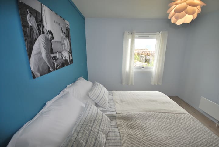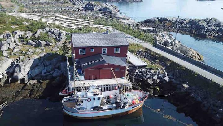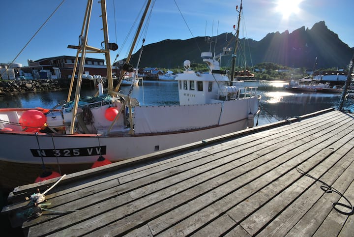 Sjøutsikt. Rorbuleilighet på Ballstad i Lofoten