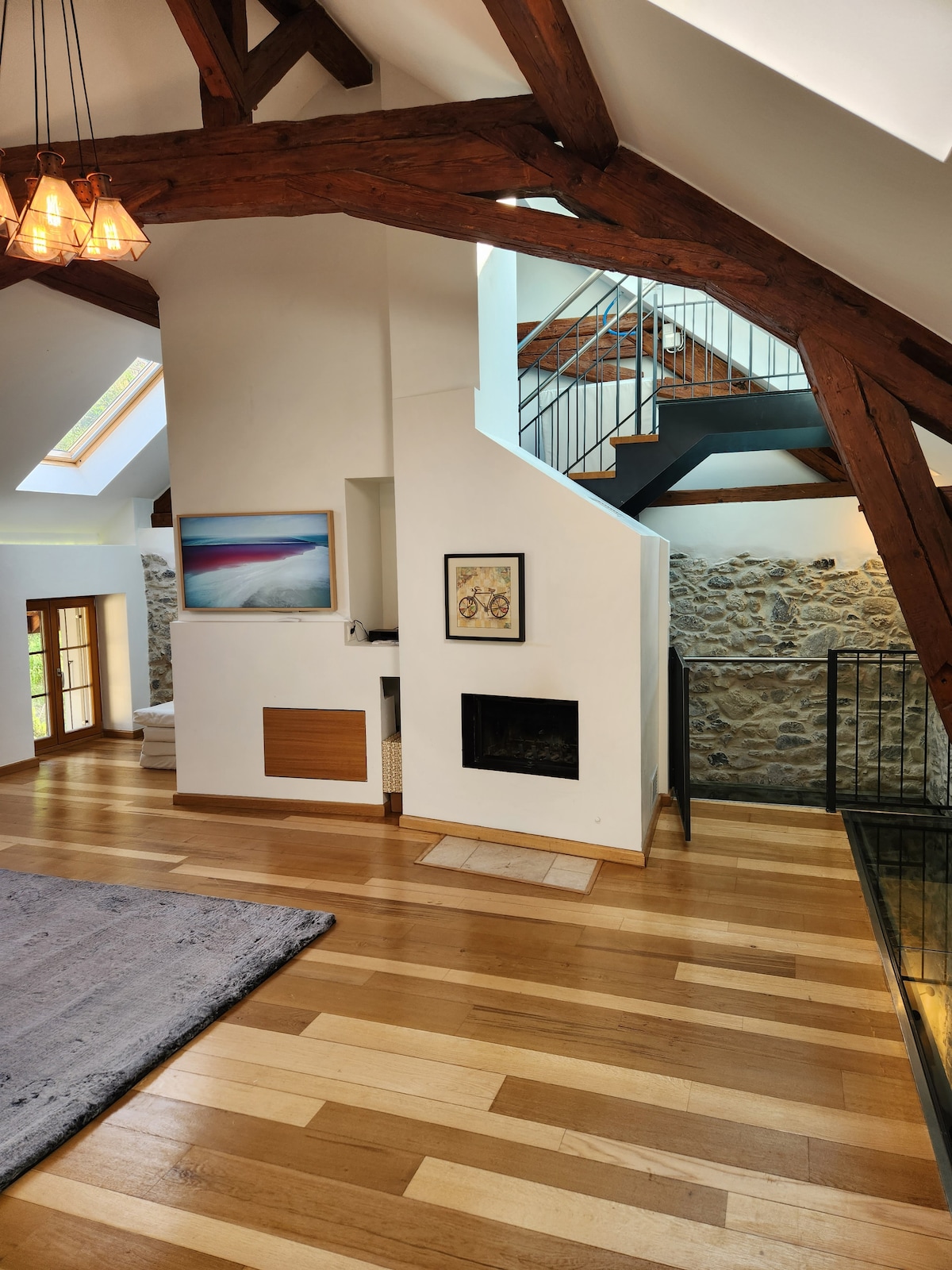 Kom og skap minner i vårt unike, romslige og familievennlige hjem. Vi ligger åtte minutter over Montreux, fredelig plassert mellom en stor grønn åker og en liten vingård. Våkne opp til fantastisk utsikt over Lac Leman og Grammont-toppen og ta morgenkaffen eller et glass vin oppe på takterrasse. Vi er lett tilgjengelige, da Planchamp togstasjon ligger bare ett minutts gange fra ytterdøren, og vi har én gratis parkeringsplass. Så mange eventyr å oppleve.