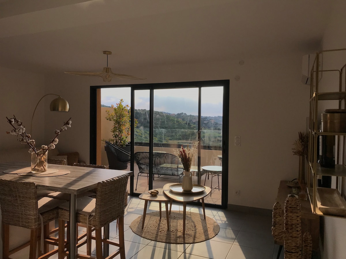 T2 tout confort, (créé au RDC d'une maison avec accès indépendant) composé de: - Salon/ Séjour avec cuisine ouverte équipée (four, plaque cuisson, micro-ondes etc), canapé-lit 2 personnes, TV, une salle d'eau et un WC séparé - 1 chambre sur mezzanine avec un lit double - WIFI : Fibre et CLIM réversible Logement situé sur les hauteurs du village dans un quartier tranquille, à environ 15 minutes à pied du centre ville de Cerbère où vous y trouverez quelques commerces ainsi que les plages.