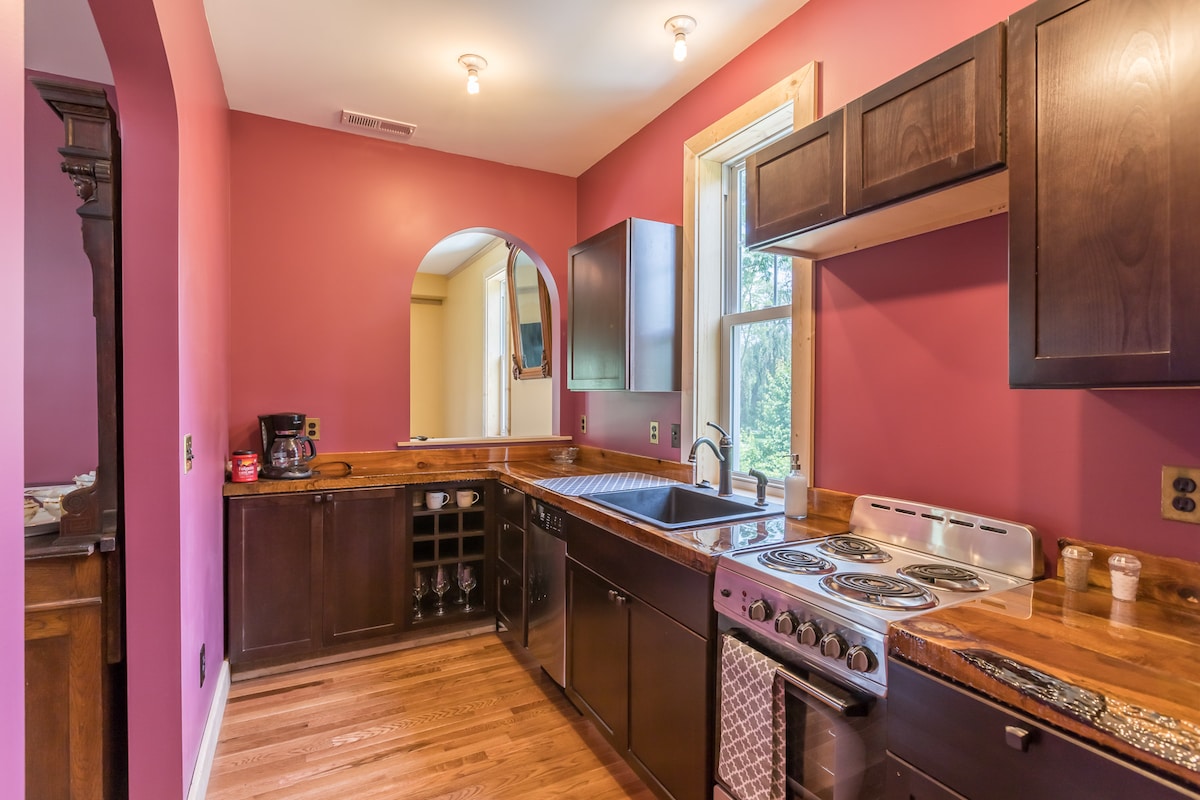 Slapp av mens du jobber, eller jobb med å slappe av. Kenton-suiten er perfekt. Beliggende i hjertet av det historiske sentrum av Urbana. Restauranter, antikvitetsbutikker, teater og butikker ligger alle innenfor gangavstand. Vår Kenton Suite-leilighet er vakkert dekorert og komfortabel for en helg eller et lengre opphold. Privat inngang gir deg fleksibilitet til å komme og gå som du vil. Raskt trådløst nettverk for arbeid. Semipriat veranda rett utenfor døren din for å nyte utsikten over den vakre hagen.