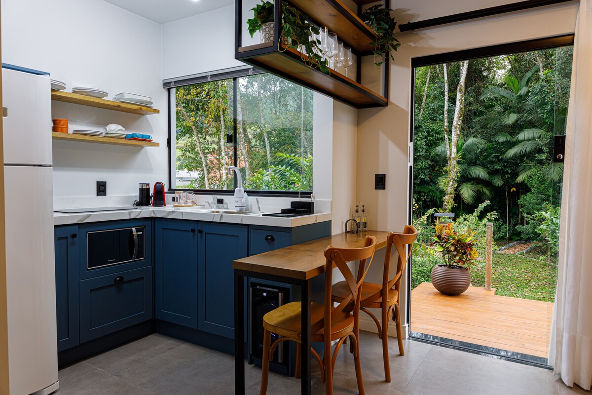 Hytta @oranchodacolina har: Fullt utstyrt kjøkken, mikrobølgeovn, elektrisk ovn, blender, brødrister og airfryer. Vi tilbyr også basisvarer som salt, sukker, olivenolje. Queensize-sengen er superkomfortabel med sengetøy og badekåper av topp kvalitet. Klimaanlegg med varme og kjøling, som gir termisk komfort uansett årstid. Badekar med badesalt. Og på badet, dusj og gassoppvarmede kraner med en vakker utsikt over naturen.