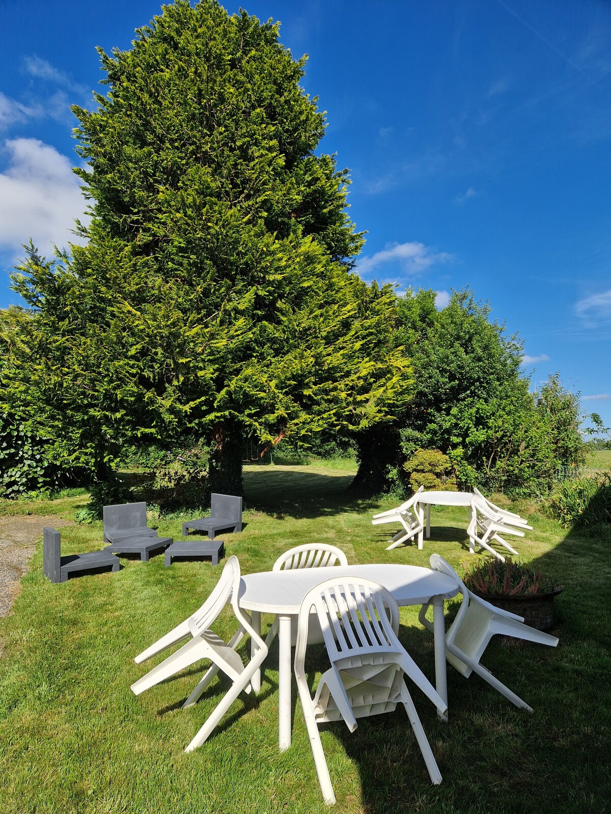 Hus i naturen, mellom land og sjø, ideelt for 4-6 personer, mulig for 8, fløy av et renovert hus i Cornwall på en stor hage med trær og blomster. 10 minutter fra Rosporden med sine mange butikker, 20 minutter fra havet og den inngjerdede byen Concarneau, 20 minutter fra Pont-Aven, 25 minutter fra Quimper og 40 minutter fra Carhaix. I nærheten: Glénan, Pointe du Raz og La Torche, øyene Sein, Molène, Ouessant. Ideelt for fotturer, ridning ... Hus med alle bekvemmeligheter