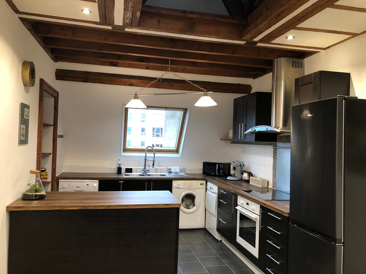 Velkommen til denne lyse, totalrenoverte, romslige og innbydende leiligheten på 55 kvm med ett soverom. Ideelt beliggende i sentrum, bare noen skritt fra prefekturet og mindre enn ti minutters gange fra togstasjonen, er det perfekt for en jobbtur eller en romantisk ferie. På innsiden finner du: • en stor stue med fullt utstyrt kjøkken • et soverom med queensize-seng og skrivebord • et walk-in-klesskap/vaskerom • et bad og et separat toalett • fiberoptisk trådløst nettverk