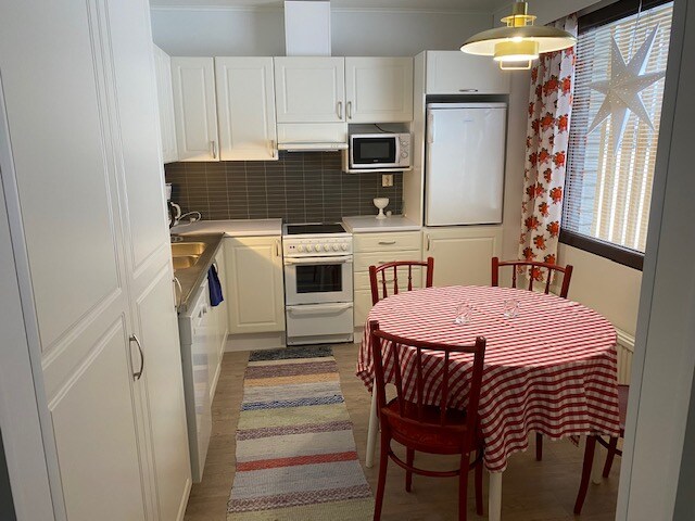 Slapp av sammen med hele familien i denne fredelige hytta. Eiendommen er fullstendig renovert, barnevennlig – barneseng, nødvendigheter for matlaging og vask, rikelig med servise, vaskemaskin og oppvaskmaskin, mikrobølgeovn, kaffemaskin, vannkoker, ekstra madrass, badstue på lørdager. 20 (liten)/50 km til lokal dagligvarebutikk, må være forberedt på å lage mat i leiligheten. Egen bil eller leiebil er nødvendig, bussruten er svært begrenset.