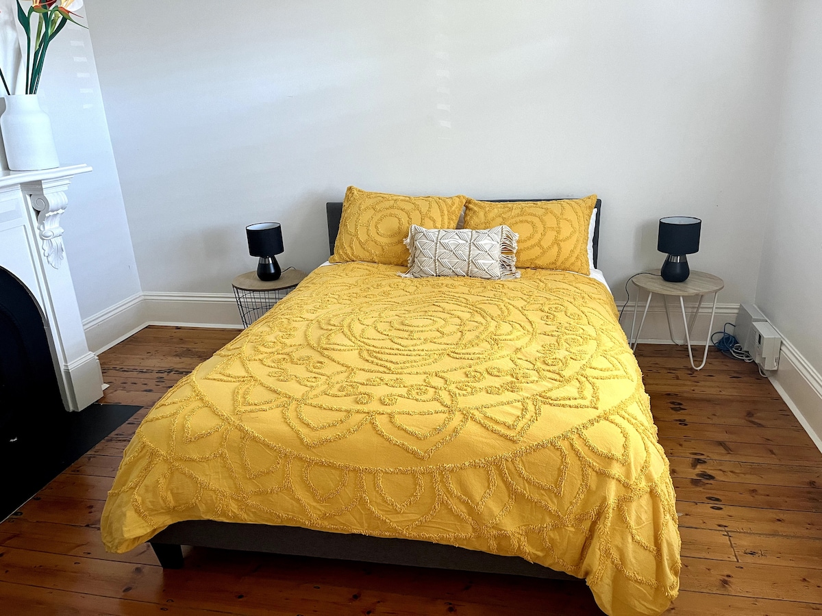 Jeg elsker den lange tynne stripen som er Fitzroy, som strekker seg fra toppen av byen mot nord skulder på hver side av Collingwood og Carlton. På en solfylt dag kan du ta en spasertur nedover Brunswick eller Smith Street inn til byen, nyte vår lokale arkitektur, gatekunst, butikker... og stoppe underveis for et måltid, en drink, litt musikk.... Med tre transportkorridorer er det enkelt å reise fra St Kilda ved bukten, til Preston og utover. Museet, MCG og Rod Laver Arena, nasjonalgalleriet, konserthuset og teatrene våre, våre kunstfylte veier og fantastiske spisesteder er alle innenfor rekkevidde. Hvis du befinner deg i Melbourne for arbeid eller for fornøyelsens skyld, er denne romslige og komfortable, selvbetjente leiligheten med en queensize-seng, kjøkken, dusj i full størrelse, separat toalett og vaskemaskin det perfekte stedet å stoppe. TV og trådløst nettverk er tilgjengelig, samt sengetøy og håndklær og kaffe, te, sjampo og såpe. Det er fem trinn inn i bygningen og det ene trinnet når du er inne i leiligheten. Vi kan gi parkeringstillatelse på gaten. Gi oss beskjed på forhånd hvis du trenger tillatelsen.