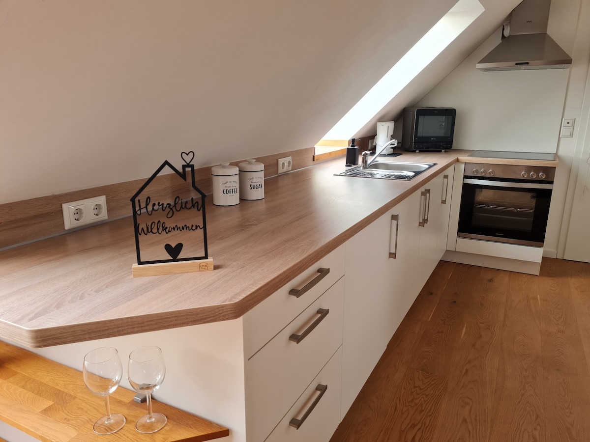 Vår nyoppussede, svært spesielle leilighet i loftsstil har en sentral beliggenhet i en vakker, gammel vingård i hjertet av Rüdesheim. Alle attraksjonene ligger rett rundt hjørnet. På bare noen få minutter kan du nå de viktigste attraksjonene, som taubaneholdeplassen, den berømte «Drosselgasse» eller starte vandringen opp til Niederwald-monumentet. Selv om den er sentralt plassert, byr leiligheten på privatliv og ro. Alt du trenger for et avslappende opphold i Rüdesheim.