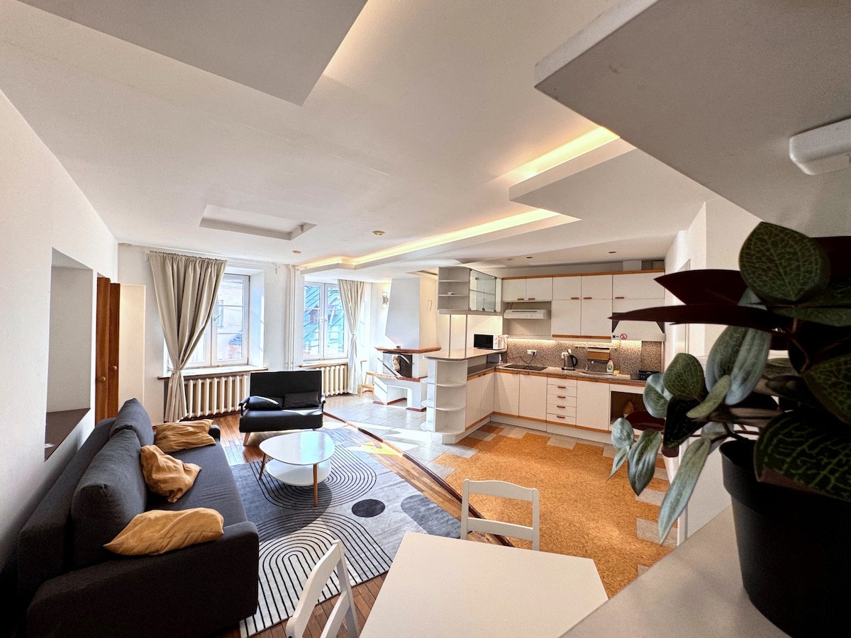 You will be staying in a centrally located, newly renovated, beautiful apartment in an old historical building which is located in a quiet, closed yard with your own parking and independent entrance. This spacious apartment was created by a known Lithuanian designer to make your stay extremely comfortable and inspiring.
