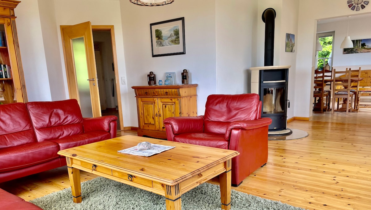 Vi leier ut vårt koselige, stilige feriehus i det rolige vestlige Rügen. Datteren vår kaller det «Familienkate Schwalbenflug», og det passer. Det er fire soverom tilgjengelig for voksne og barn. Huset ble grundig renovert i 2020, har et moderne kjøkken og to flotte dusjbad, en sitteplass med peis og en terrasse med utsikt over ridegården og hestegården.