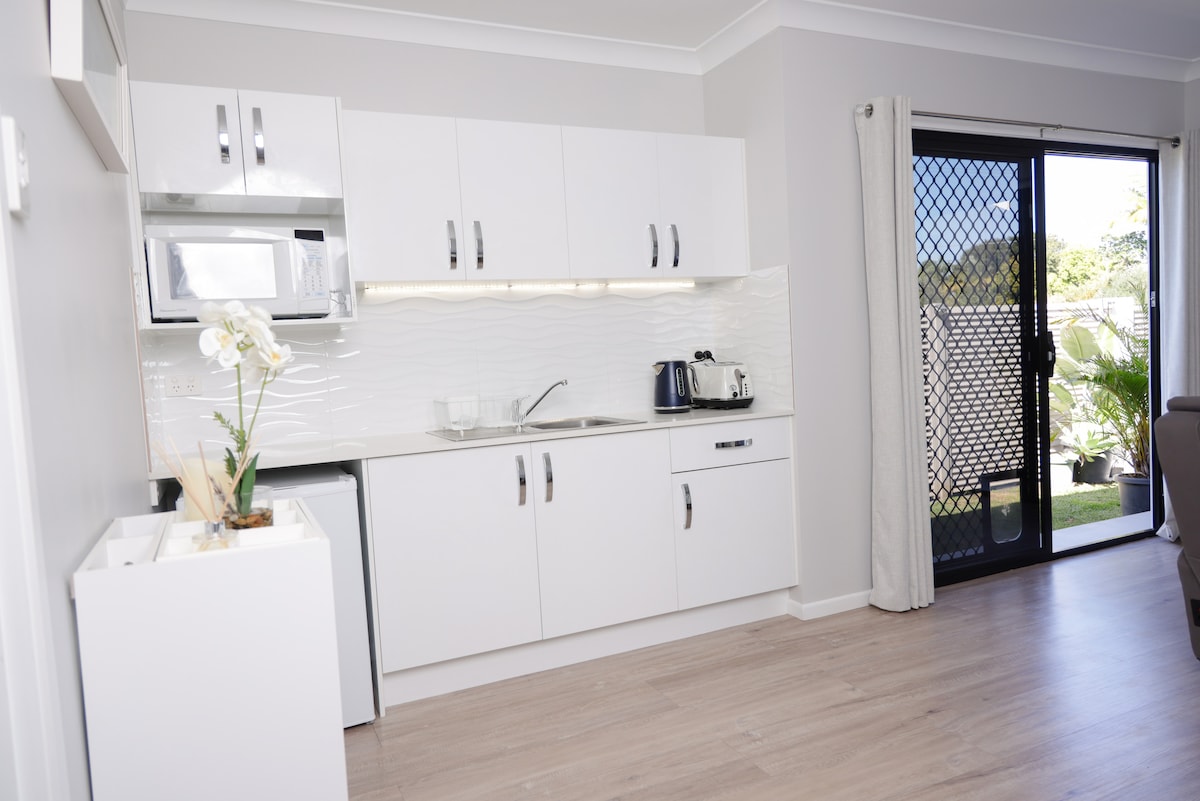 Opplev selve symbolet på komfort i gjestehuset vårt med to soverom og 1,5 bad. Plassert i den private og sikre Sanctuary Pines Estate. Eiendommen vår tilbyr en rolig flukt fra travelheten, slik at du kan komme i kontakt med deg selv og dine nærmeste. Nyt det fineste sengetøyet, myke håndklær og gjennomtenkte fasiliteter. Med enkel tilgang til golfbaner i verdensklasse, livlige shopping- og spisesteder og alle de store temaparkene, venter drømmeferien din på Gold Coast.