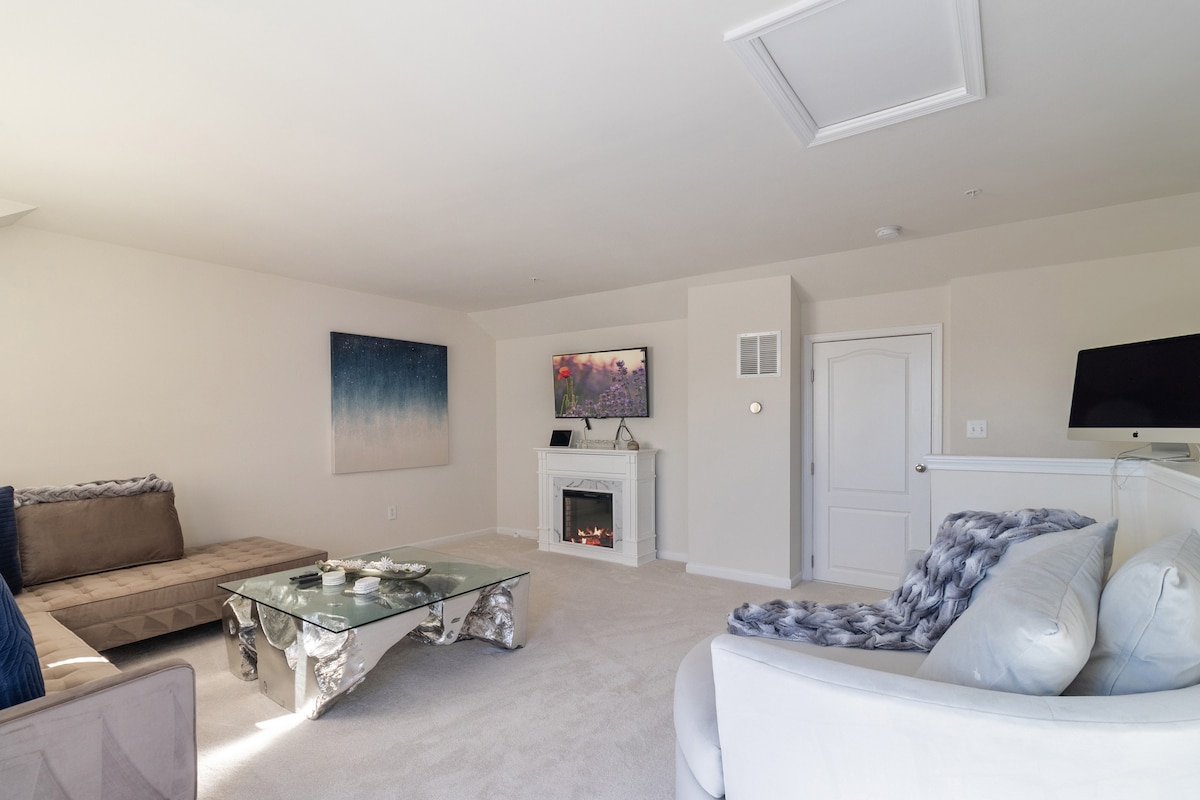 Historie og luksus møtes i utleiestedet ditt, som er en omhyggelig renovert luksusetasje som inkluderer førsteklasses fasiliteter, privat takterrasse med pergola, dobbeltsidig gasspeis, luksuriøst og romslig bad inkludert vaskemaskin, solcelledrevne mørkleggingspersienner og ledende gourmet kaffemaskin! Vi ligger i nærheten av Capital Hill, Brookland, Ivy City, Union Market og H-gatekorridoren, og det er ti minutter med Uber fra Union Station. Gratis parkering er tilgjengelig på stedet!