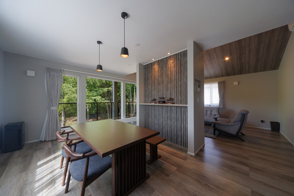 Flott renovert gårdshus med fem soverom i Rusutsu. Stor tradisjonell japansk hage og utsikt over Yotei. Den ligger bare 5 minutter fra Rusutsu Resort og 30 minutter fra Niseko. Ideelt for grupper eller familier. Yotei Moon er utstyrt med et ventilasjonssystem (Rosnay) som gjør at luften kan fornyes kontinuerlig, samtidig som den valgte temperaturen opprettholdes for å holde deg varm hele tiden. MERK: En stor ny oppvaskmaskin har nylig blitt installert for å gjøre oppholdet ditt enda mer komfortabelt.