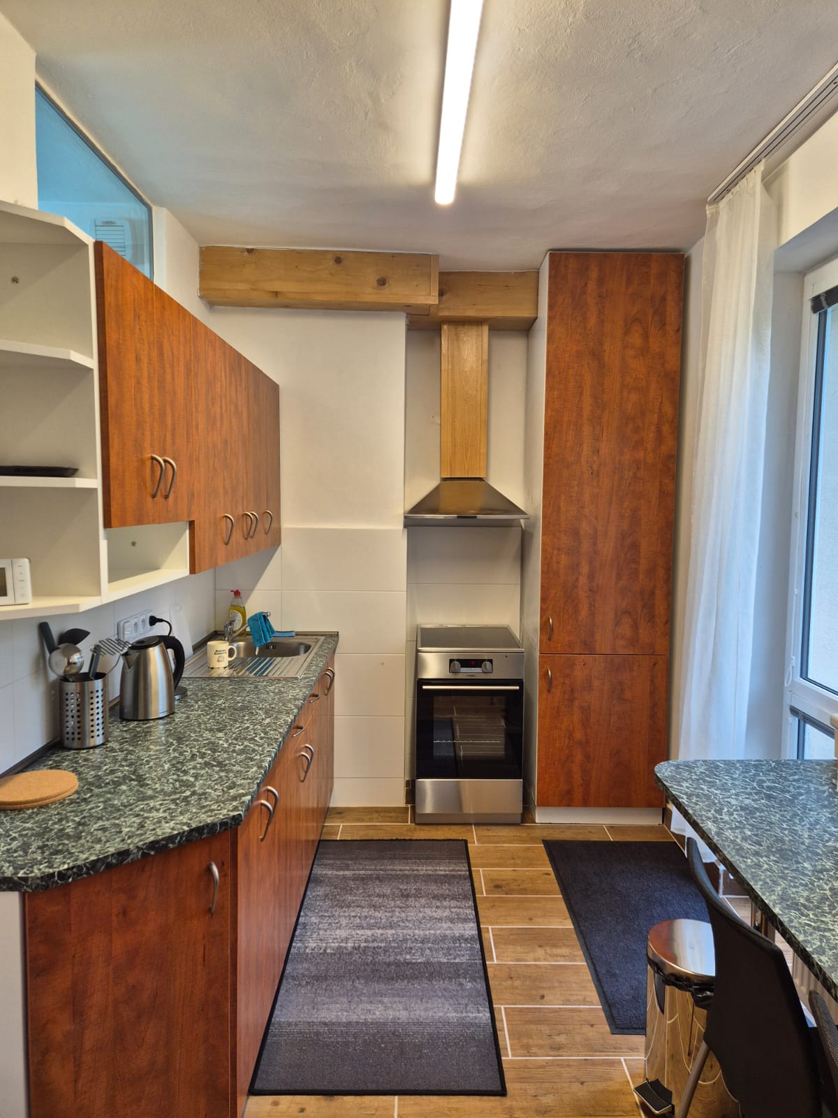 Leiligheten tilbyr en fantastisk utsikt over det omkringliggende landskapet, noe som lar deg leve helt i harmoni med fjellnaturen. Leiligheten er fullt utstyrt med nye møbler. Soverommet har en dobbeltseng, en enkeltseng og en garderobe. For en annen soveplass er det en sammenleggbar sofa som tilbyr opptil to senger. Den utstyrte kjøkkenen har alt du trenger for å lage mat. Det dominerende trekket er en stor terrasse med bord og seks stoler. Etter krevende ski- eller fjellturer er det tilgjengelig et bad med badekar for hjemmevelvære.