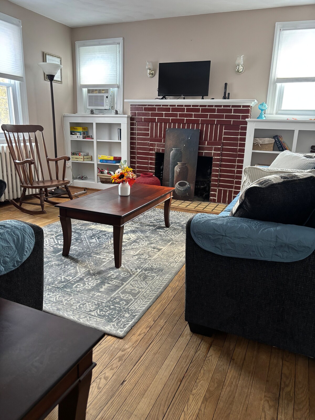 Ren, privat leilighet i kjelleren med privat soverom (queen-seng), pluss sammenleggbar enkeltseng for en tredje gjest, privat bad, kjøkkenkrok utstyrt med kjøleskap, Keurig-kaffetrakter, komfyr, kjele, mikrobølgeovn og brødrister, romslig stue med peis utstyrt med TV (Netflix) og gratis trådløst nettverk. Spisebord med to stoler. Grunnleggende kjøkkenutstyr og sølvtøy. Arbeidsplass: skrivebord, svingstol. Inngangsstien er skrånende, kan være vanskelig for gjester med bevegelseshemninger.