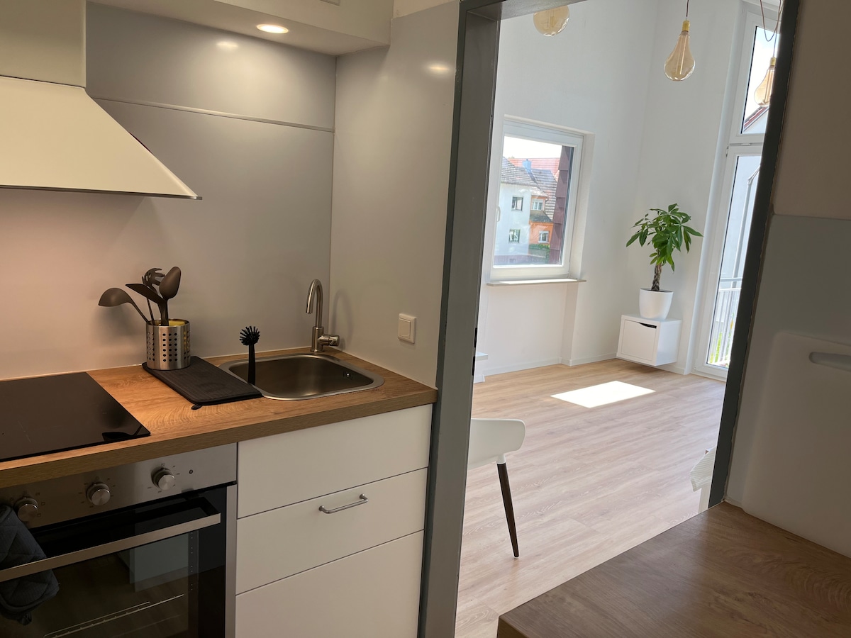Den lyse og sentrale leiligheten ligger rett mellom Ringpark og Südbahnhof Würzburg. Den er designet for opptil fire overnattingsgjester. På soverommet er det en 1,60 m bred seng, og i stuen er det en sovesofa som også er 1,60 m bred. Kjøkkenet er fullt utstyrt. I tillegg til et romslig dusjbrett, har badet også en vaskemaskin/tørketrommel, som også tillater lengre opphold.