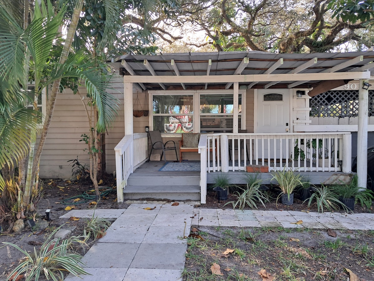 Velkommen til den koselige hybel-leiligheten vår på South Hutchinson Island, Florida! Det ene soverommet vårt er perfekt for enslige eller par, med en queen Murphy-seng og privat inngang i første etasje. En induksjonstopp, konveksjonsovn, fullstørrelses kjøleskap, smart-TV og et komplett bad. Vi ligger i et vennlig nabolag, i nærheten av strender, brygger, restauranter og historisk sentrum. Kom og bo hos oss og nyt alt Treasure Coast har å by på!