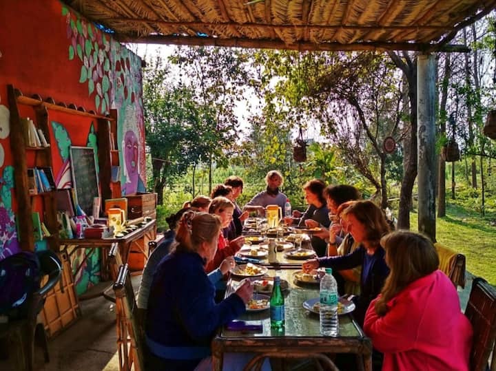 Nyt en ayurvedisk lunsj på en gård