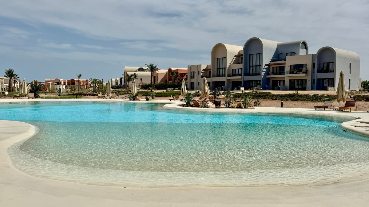 En rolig, designert leilighet med utsikt over et basseng i lagunestil, med rene linjer, naturlige materialer og en lett, ryddig følelse. Skapt for gjester som verdsetter privatliv, komfort og en langsommere rytme i El Gouna. Et gjennomtenkt interiør åpner seg direkte mot vannet, noe som gjør morgenene enkle og kveldene rolige. Ideell for par eller enslige reisende som ønsker en fredelig base i nærheten av alt, uten støy. Best egnet for avslappende opphold, fjernarbeid eller lengre ferier i stedet for festhelger.