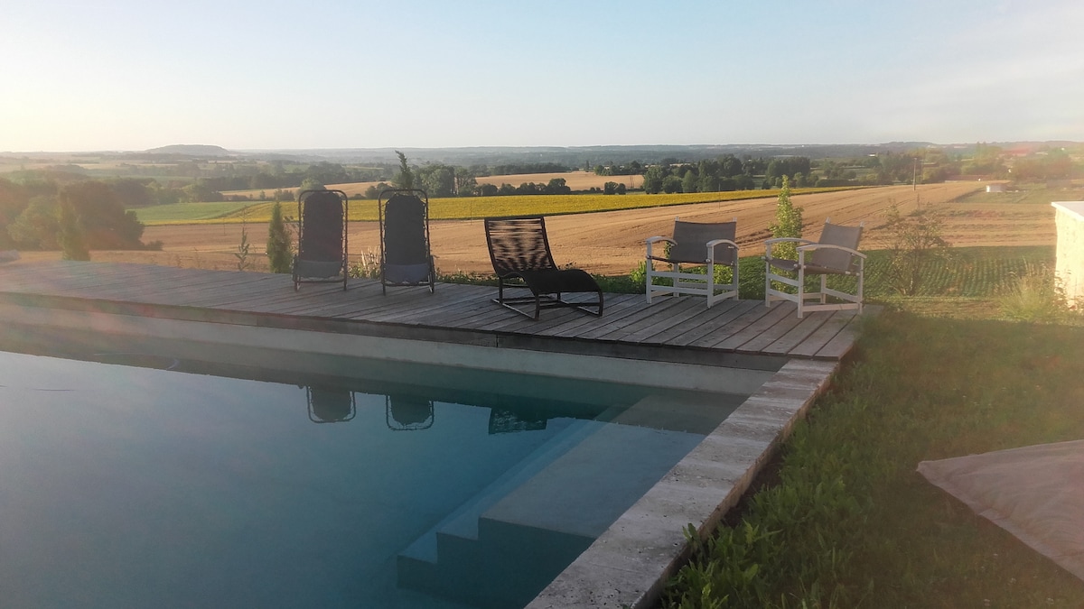 Dette økologiske tilfluktsstedet ved siden av vår eng med villblomster er perfekt for naturelskere og det perfekte stedet å slappe av på. Vårt unike tidligere vannreservat på området til vårt C18-vingårdsslott har blitt kjærlig forvandlet til en 32 m2 bed and breakfast-suite utenfor strømnettet med en kingsize-seng, dusjrom/toalett, privat terrasse og utstyrt utendørs kjøkken. Gjestene kan nyte alle de andre fasilitetene våre, inkludert det fantastiske, oppvarmede bassenget og området. Ikke egnet for barn, kjæledyr eller personer med nedsatt bevegelighet.