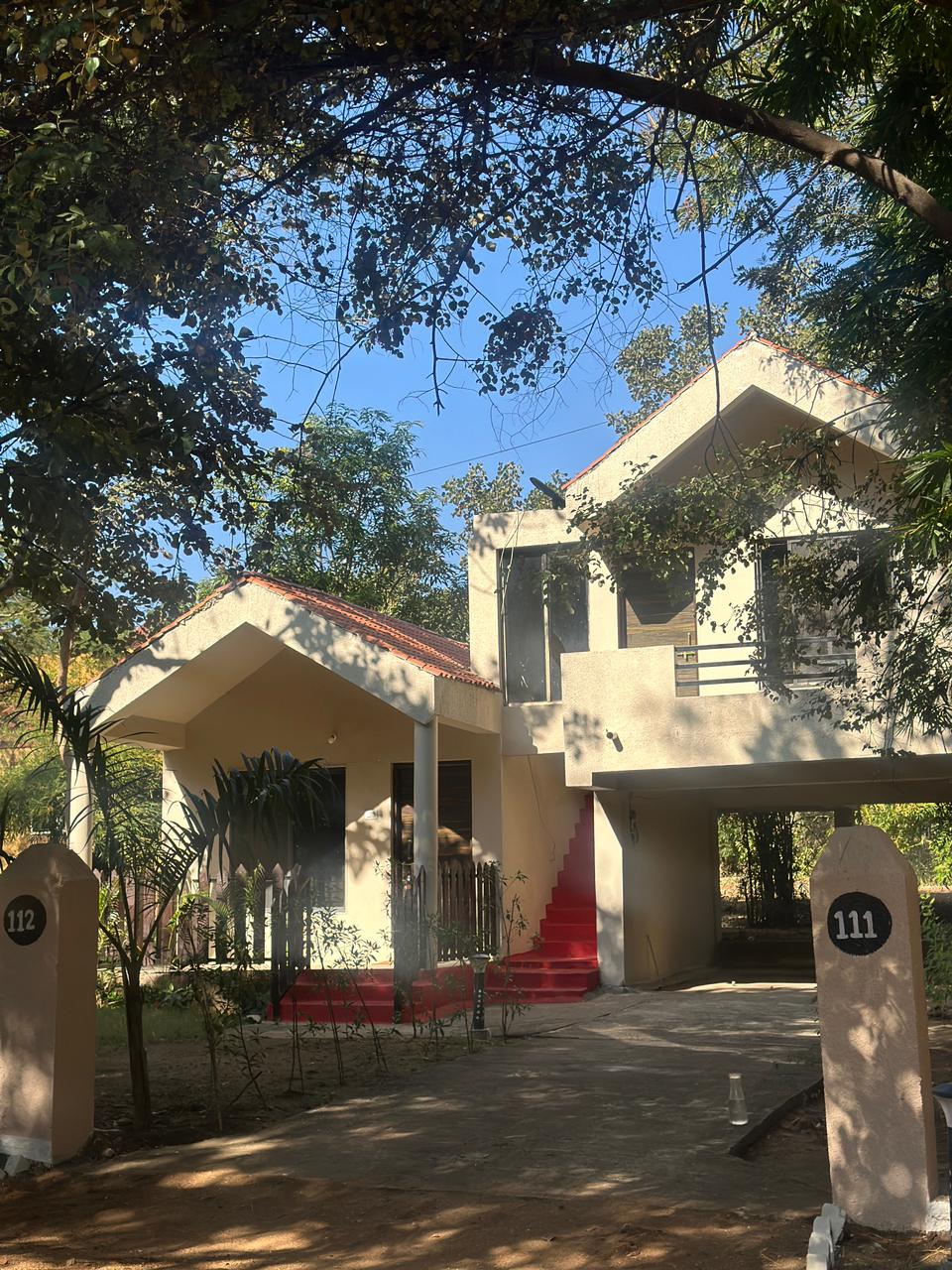 🛖 Bo i rustikk luksus Våre ti forhøyede tømmerhytter i machan-stil passer sømløst inn i jungelen. Alle har en romslig balkong som åpner seg direkte inn i skogen. 🍲 Måltider laget med kjærlighet Oppholdet ditt inkluderer en solid frokost og ett deilig måltid daglig, slik at du kan fylle på før eller etter jungelopplevelsene dine uten bekymringer. 📍 Beliggenhet. Vi ligger i Madhya Pradesh, bare minutter fra portene til Turia-parken, og tilbyr enkel tilgang til spennende jungelsafari og stjernekikking.