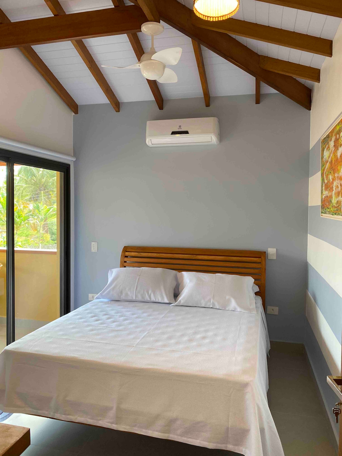 Kjæledyr i liten størrelse på forespørsel. Leilighet for to personer i nærheten av havet, ca. 250 meter fra Feiticeira-stranden. Ikke egnet for mindreårige. Slapp av på dette unike og rolige stedet. Leilighet med queensize-seng, smart-TV, klimaanlegg, vifte, mørkleggingsgardin og sengetøy. Baderom med elektrisk dusj og flytende såpe. Balkong utstyrt for å tilberede måltider med komfyr, mikrobølgeovn, kjøleskap og ulike redskaper! Ikke bruk bærbar grill Stikkontakter, 110 volt.