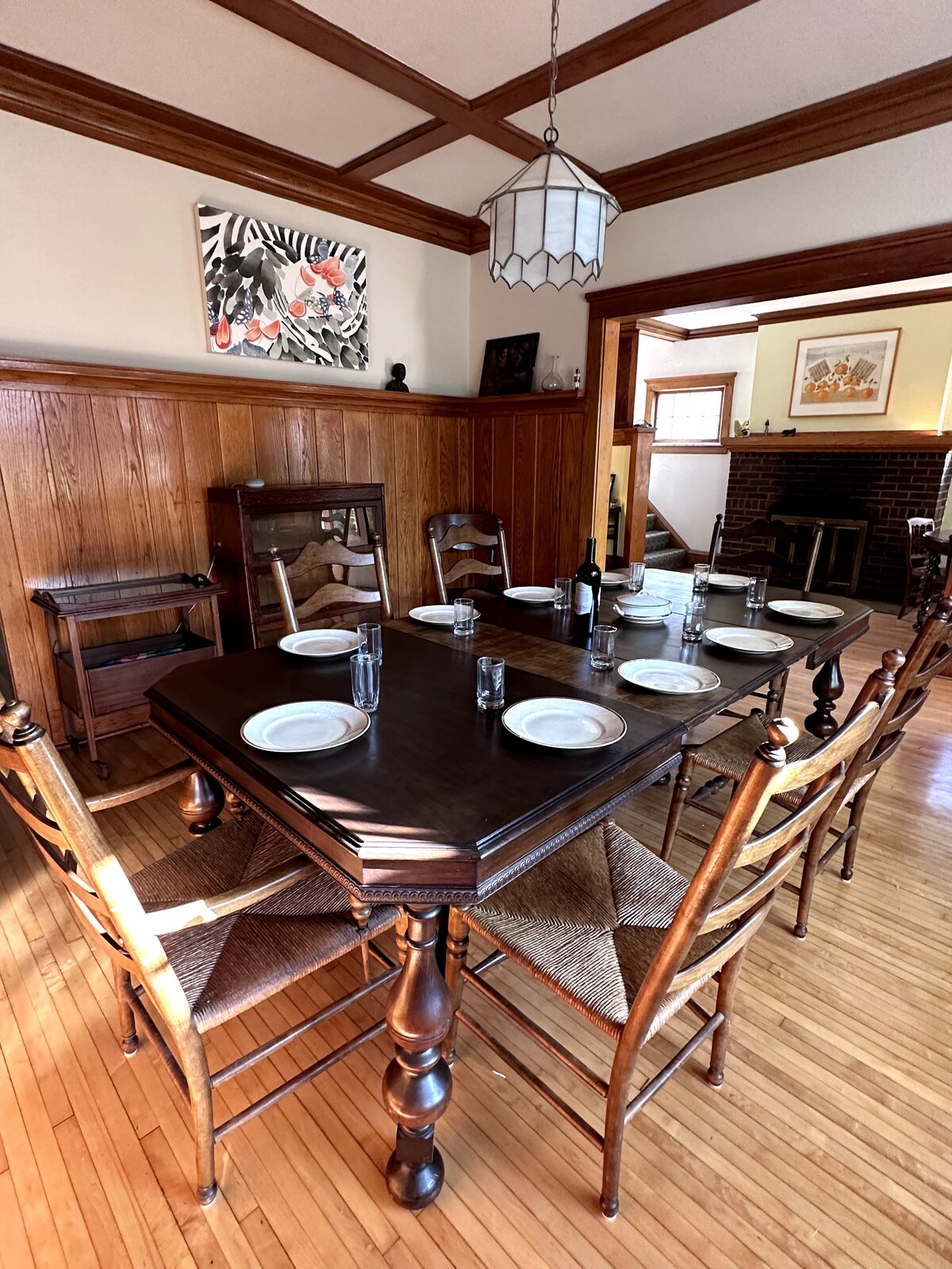 Velkommen til vår Craftsman Bungalow fra 1924! Vår bungalow i murstein venter på oppholdet ditt, og kombinerer Prairie House-stilen med innovasjonene til Chicago Craftsman. Du vil nyte den øvre suiten, med egen inngang, to soverom, kjøkken og fullt bad. Nyoppussede porselensmarmorgulv inspirerer til luksus med hvert trinn, sammen med den nye «Article»-seksjonen, 50" TV med strømming, 100 % bomullssengetøy og håndklær, et kjøkken fullt av fordeler og apparater, og frodig grøntområde for å holde luften ren.