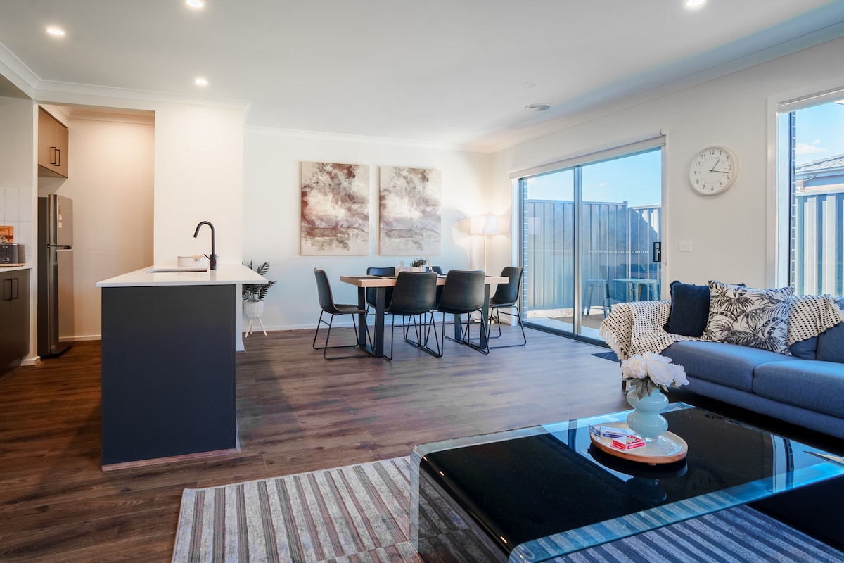 Welcome to Your Stylish Retreat in Grandview Estate Experience hotel-level cleanliness and modern designer comfort in this beautifully appointed home. Immaculately styled and professionally cleaned, it offers a peaceful escape on a quiet, family-friendly street. Enjoy convenient access to: • Melbourne CBD – 25 mins by car • Melbourne Airport – 30 mins by car • Rockbank Station – 8 mins (fast trains to CBD) Unwind with crisp hotel-grade linens, air conditioning, and calming spaces.