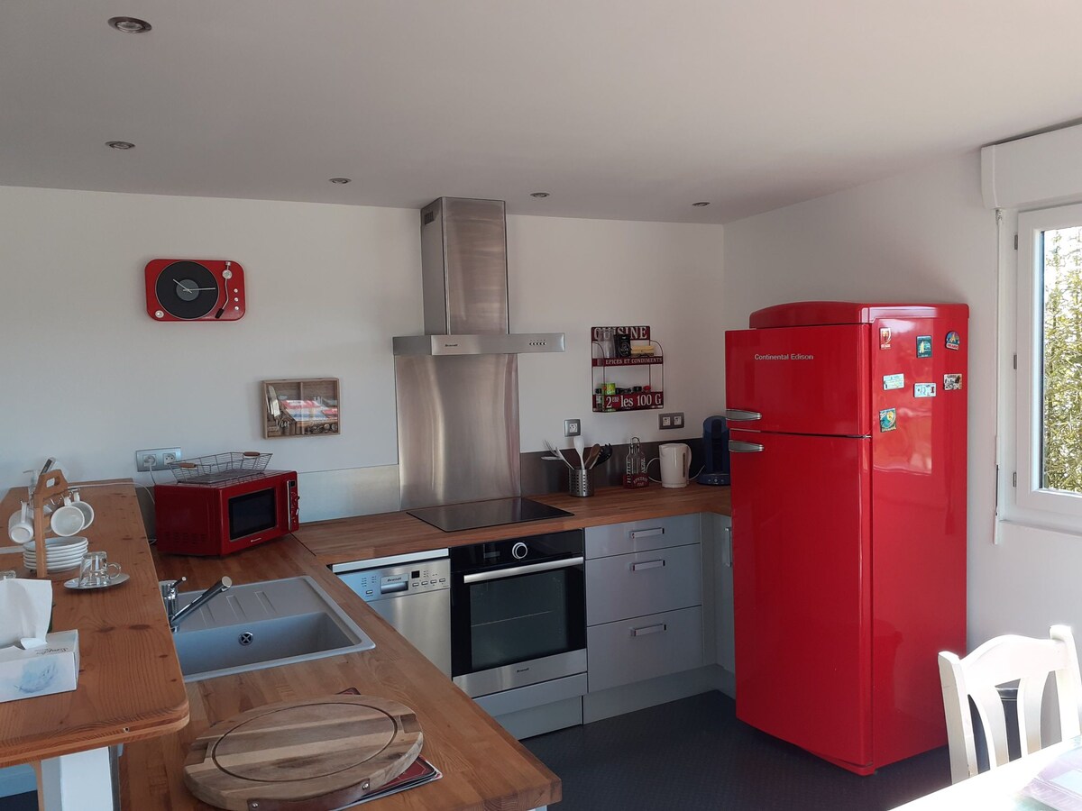 40 m2 helt ny bolig, med klimaanlegg, utstyrt med Wi-Fi på høydene i landsbyen Sainte Croix du Mont. Den har en stue (åpen kjøkkenløsning, sittegruppe), et soverom med garderobeskap/skap med en seng på 160 cm som kan deles i to senger på 80 cm), 1 bad/toalett med garderobeskap (støvsuger, kost...) 1 fullt utstyrt kjøkken 1 stue med 2 svært komfortable sovesofaer for 1 person, TV, USB-uttak. 1 terrasse i tre, hage med utemøbler. 1 parkeringsplass