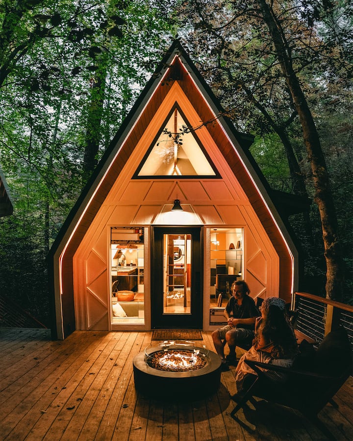 Triangeli – moderne A-frame-hytte ved innsjøen