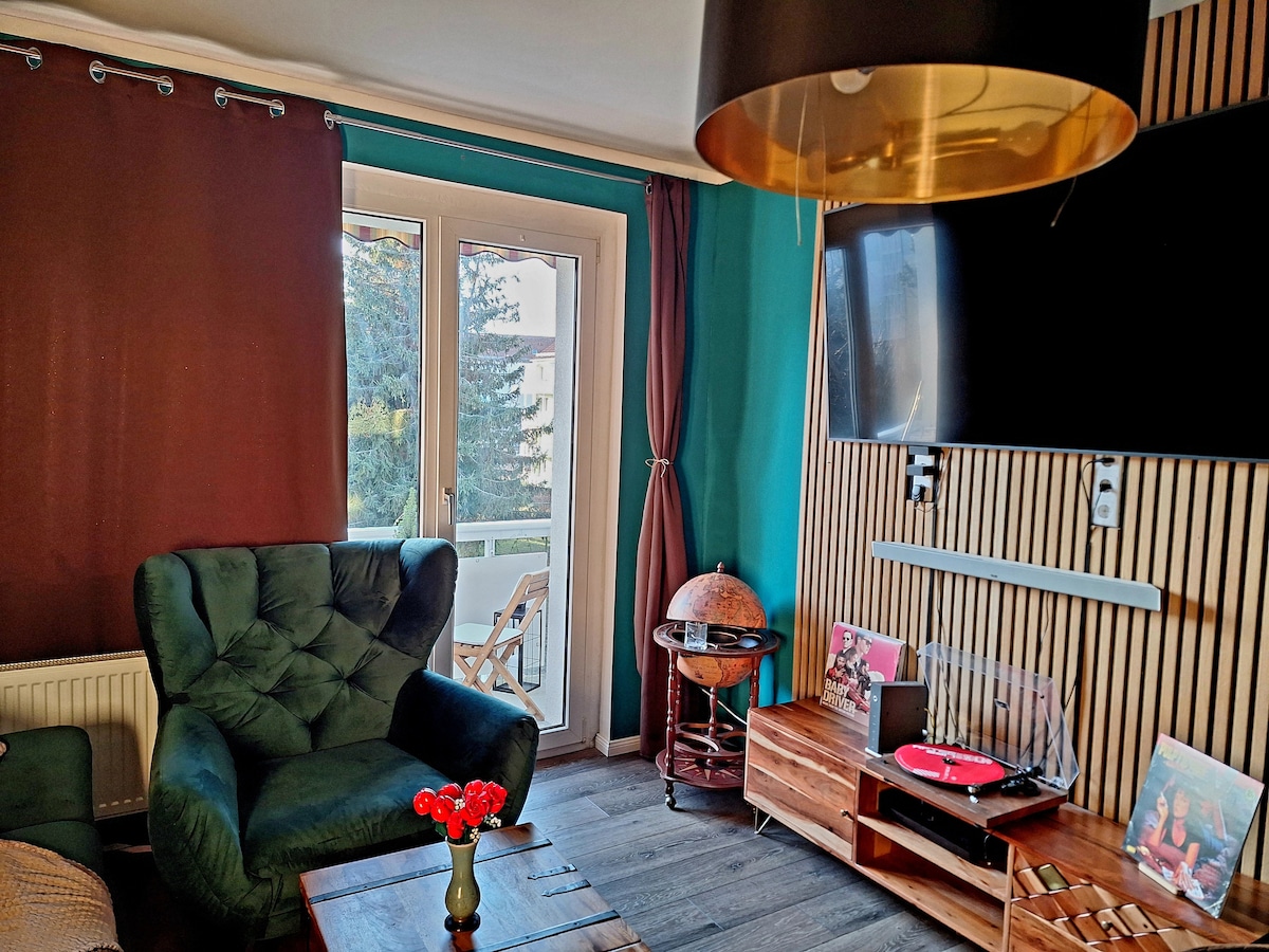 Velkommen til den lysrike treromsleiligheten vår med idyllisk utsikt og balkong. Denne leiligheten passer perfekt for par, familier eller forretningsreisende som verdsetter høy kvalitet og en koselig atmosfære, samtidig som den har en enestående beliggenhet. Fordyp deg i moderne fasiliteter med arbeidsplass, gratis te, kaffe og raskt internett. Med eksklusiv soveplass og gratis parkering ønsker vi deg velkommen til Nuvana i Leipzig!