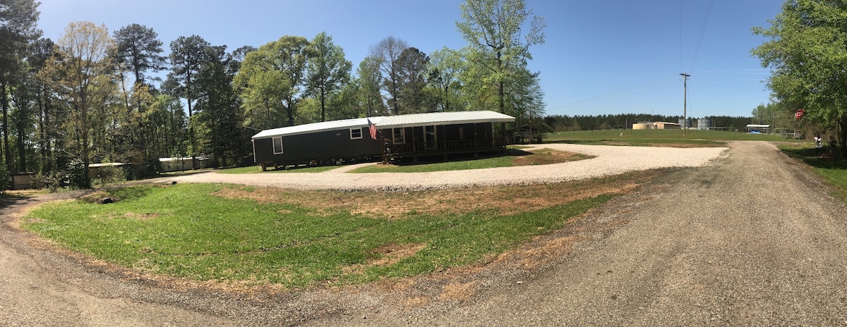 Slapp av sammen med hele familien på dette fredelige stedet. Eiendommen ligger på rundt 50 mål. Den har en stor bakre veranda å sitte ute på med en vakker utsikt. Du er omgitt av natur. Om natten kan du se hjort som beiter. Vi har et rundt basseng på over 18' med spektakulær utsikt over beitemarken. Vi er ca. 30 minutter unna Toledo Bend Lake. Kisatchie nasjonalskog ligger ca. 30 minutter unna. Turstier og bading. Dette huset har én kingsize-seng, én queensize-seng og fire enkeltsenger.