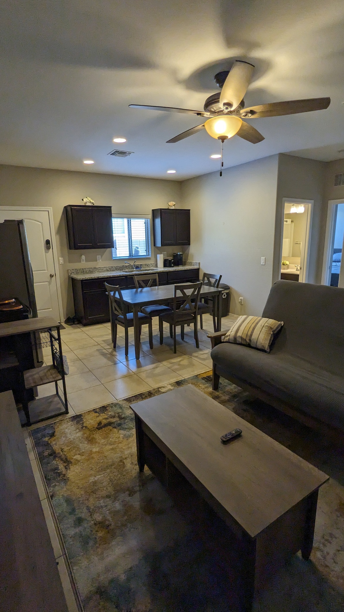 Velkommen til den elegante, moderne suiten vår i Casa Grande i Arizona! Opplev uovertruffen komfort i dette romslige tilfluktsstedet, komplett med tekjøkken, privat terrasse og vaskemaskin/tørketrommel. Nyt privatliv med egen inngang og gateparkering. Vårt kostnadseffektive, moderne opphold tilbyr et overlegent alternativ til dyrere lokale hoteller. Omfavn den luksuriøse hjemmefra-hjemme-atmosfæren i dette 2021-bygde tilfluktsstedet, ideelt for avslapning eller en produktiv jobbtur. Arizona-eventyret ditt starter her!