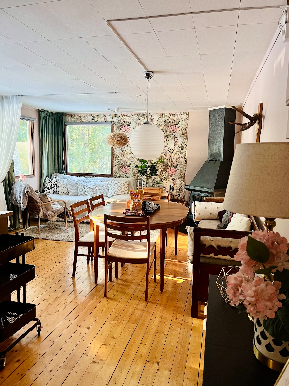 Smakfullt innredet fredelig miljø ved skog og innsjø