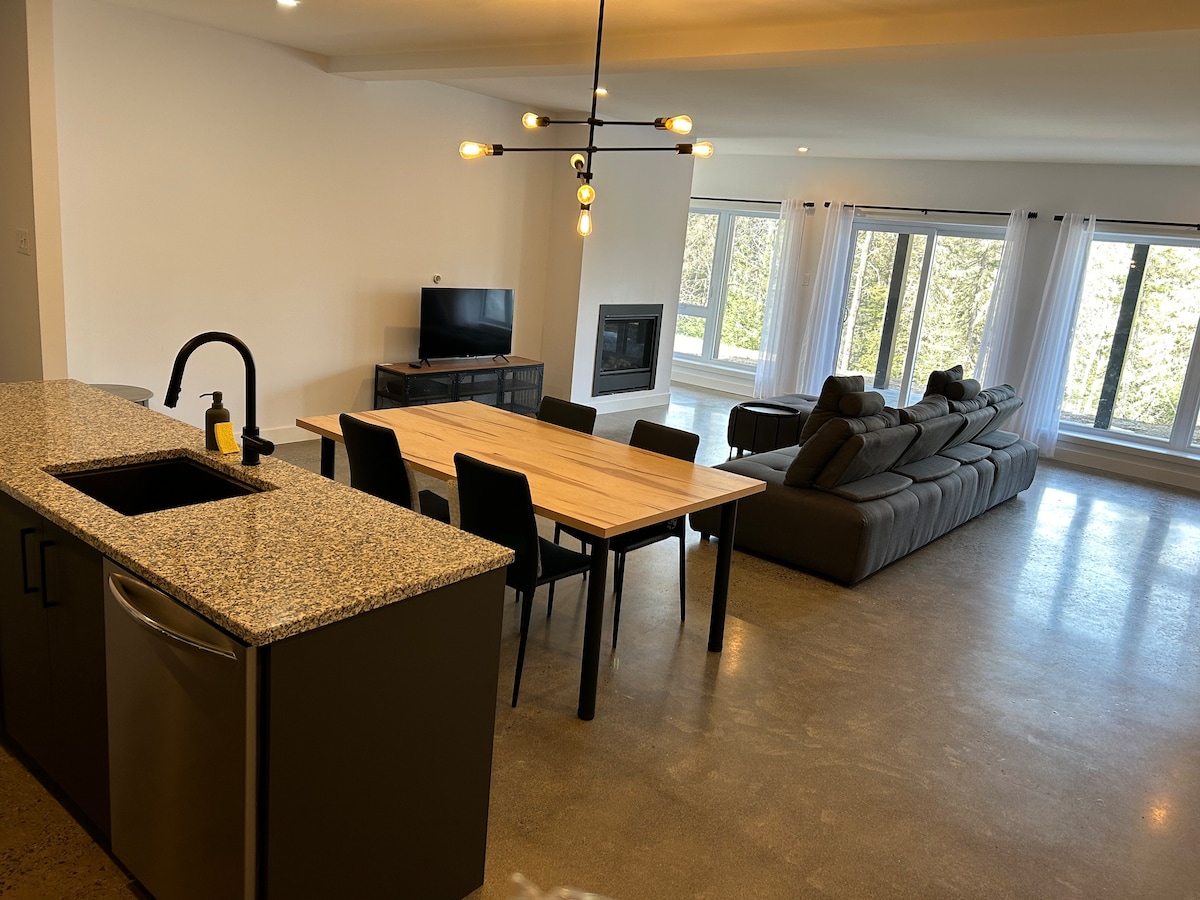 Fullt utstyrt leilighet, godt opplyst takket være de mange vinduene med fantastisk utsikt over Mont-Édouard. Denne leiligheten tilbyr et fullt utstyrt kjøkken, stue, soverom (åpent), bad, gasspeis og varme i gulvet. Hyggelig uansett sesong. Du kan øve på forskjellige aktiviteter der. Om vinteren: slalåm, langrenn, snøsko, fatbiking, turgåing, høyveier osv. Om sommeren: terrengsykling, turgåing, fjord, restauranter osv.