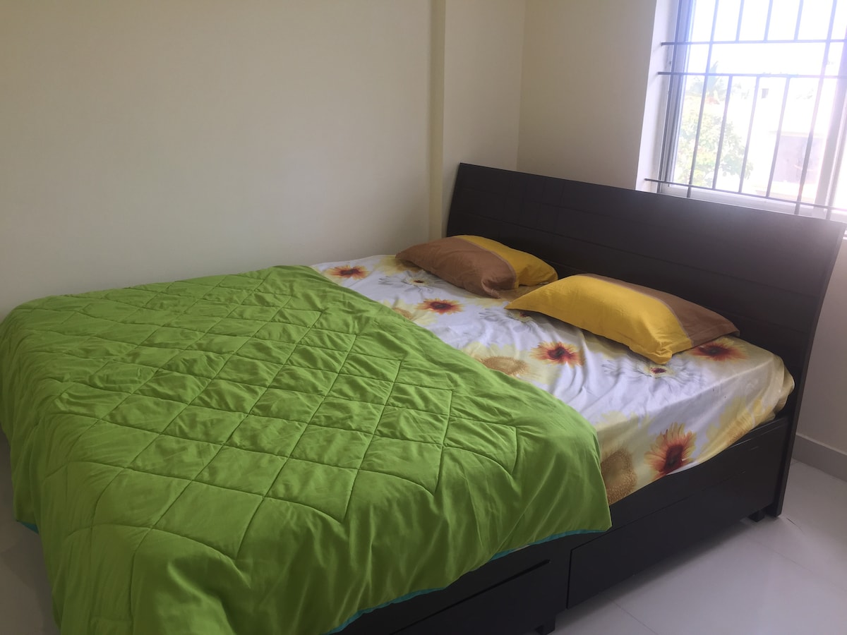 Velkommen til mitt fullt møblerte hjem med to senger og to bad i North Bangalore, ideelt for opptil seks gjester. Begge soverommene har dobbeltsenger, og stuen har en sovesofa, LED-TV, UPS-omformer og Urban Ladder-møbler. Kjøkkenet er fullt utstyrt med et LG-kjøleskap, brødrister, induksjonstopp og alle nødvendige redskaper. Grunnprisen er for to gjester, med ekstra kostnader for ekstra gjester (opptil seks). Denne koselige og budsjettvennlige Airbnb-en tilbyr komfort uten ekstravagansen til et luksushotell.