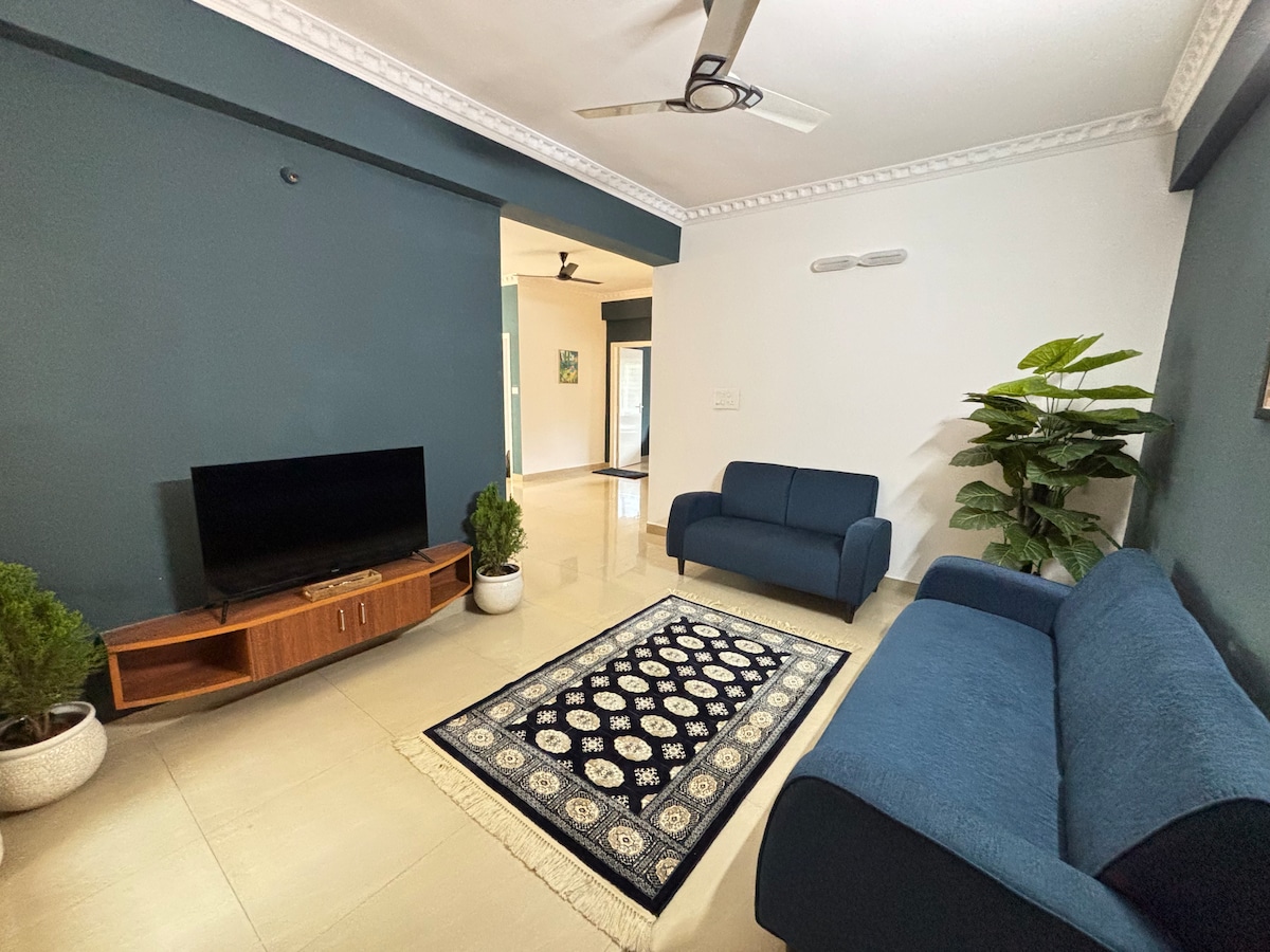 Romslig 600 kvadratmeter designer 1BHK-suite med privat balkong | høyhastighets fiberoptisk Wi-Fi og smart-TV med strømmeplattformer, arbeids-/spisebord, 24/7 strømforsyning for uavbrutt arbeid og komfort | Luxe king-seng og ortopedisk madrass, garderobeskap i tre for oppbevaring | fullt utstyrt kjøkkenkrok | sovesofa i stuen, maks. belegg 4 | heis, profesjonell rengjøring og tilgang til betalt vaskeri på stedet for langvarige opphold | ligger i sentrale Bangalore | LGBTQIA++ bekreftende
