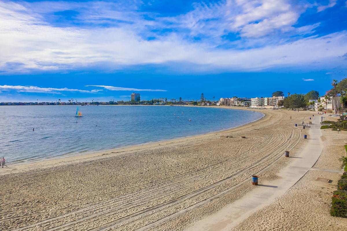 Kom deg bort til den koselige leiligheten vår med én seng og ett bad i solfylte San Diego! Bare to minutters gange fra stranden eller bukten! Det passer perfekt for par eller små familier. Slapp av i det velutstyrte stueområdet og sov godt i queensize-sengen. Nyt kjøkkenkroken, GRATIS sykler og attraksjoner i nærheten som San Diego Zoo, SeaWorld, Belmont Park. Slapp av på den tilpassede terrassen eller utforsk sandstrendene. Bestill oppholdet ditt i dag med komfort, bekvemmelighet og varige minner i tankene!