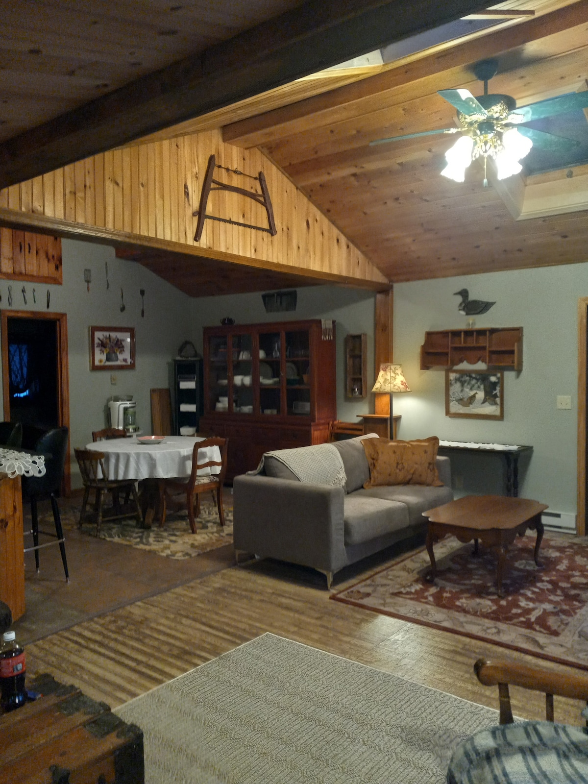 Denne sjarmerende hytta er akkurat det du trenger for en ferie! Med furu gjennom hele hytta er den koselig og komfortabel. Dette er en fullt vinterisert hytte, perfekt for alle dere som elsker snøscootere! Det er rikelig med parkeringsplasser for snøscootertilhengere, og hytta har direkte tilgang til snøscooter- og ATV-stier. Planlegger du å være her om sommeren? Det er tilgang til innsjøen over gaten. Har du en båt? Ta den med – vi tilbyr gratis båtplass!