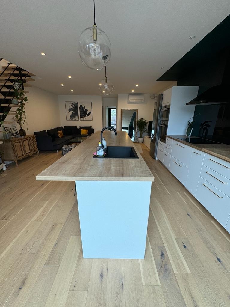 Enebolig på 53m2, bygget i 2020, i bunnen av en blindvei, uten naboer. Privat parkering, lukket hage, terrasse vendt sørover. 2 soverom med seng 160X200, garderobeskap, kontor. Bad med dusj, vaskemaskin og tørketrommel. Separat toalett. Utstyrt kjøkken, oppvaskmaskin, TV, wifi. Sengetøy, håndklær, toalettartikler. Nær sykkelstier og butikker. 15 km fra Bordeaux (direkte buss), 25 minutter fra strendene, Médoc-området og flyselskapene.