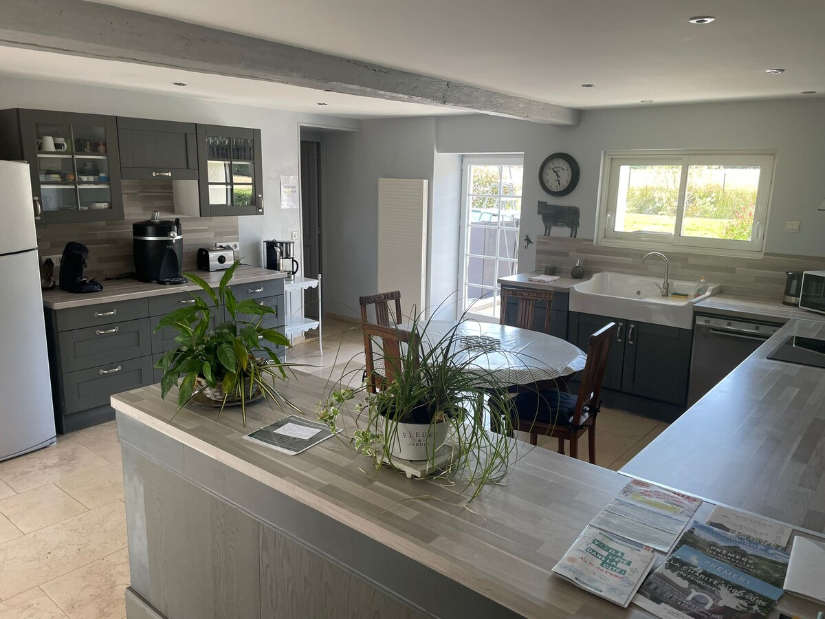 Reiser du av jobb eller personlige grunner?Kom og bo hos oss i fred! Ti minutter fra Nevers, 2,5 timer fra Paris og fem minutter fra A77, er denne helt uavhengige studioen det ideelle utgangspunktet for turer i skogen, på Loire, besøk til vingårdene (Pouilly, Sancerre) eller Magny-Cours-bananen. GR3, landeveissykkel og Morvan innen rekkevidde! Komfortabel seng, sengetøy, håndklær. Smart-TV Mikrobølgeovn, kjøleskap, minioppvaskmaskin, kaffetrakter, brødrister, vannkoker. Te, kaffe, sjokolade. 2-hjuls herberger