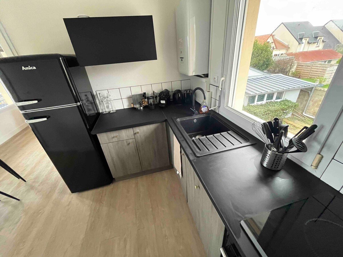 Det er en oase av fred Mellom Courseulles og Ouistreham ligger min lille leilighet på 25 m2, nyoppusset, og tilbyr deg ekte ro. En liten detalj: badet er smalt og tilgangen til badekaret kan være vanskelig for personer med bevegelsesvansker. Saint Aubin sur mer er en familievennlig landsby hvor det er godt å bo. Omgivelsene er veldig rolige og tilgangen til sjøen er rett rundt hjørnet (50 meter). Og hvis du liker historie, er du på rett sted.