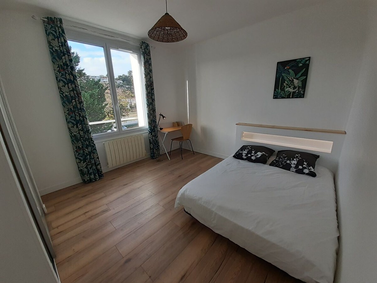Nyt oppholdet ditt i Poitiers i denne koselige og lyse leiligheten på 80 m², som nylig er renovert. Den ligger i nærheten av alle attraksjoner og fasiliteter, bare en kort spasertur fra sentrum og 15–20 minutter med bil fra Futuroscope. Denne leiligheten ligger i en rolig bygning i femte etasje med heis og parkering tilgjengelig, og er ideell for familier, bedriftsteam eller vennegjenger. Fiberglass Wi-Fi + Netflix + Prime Video + Disney +