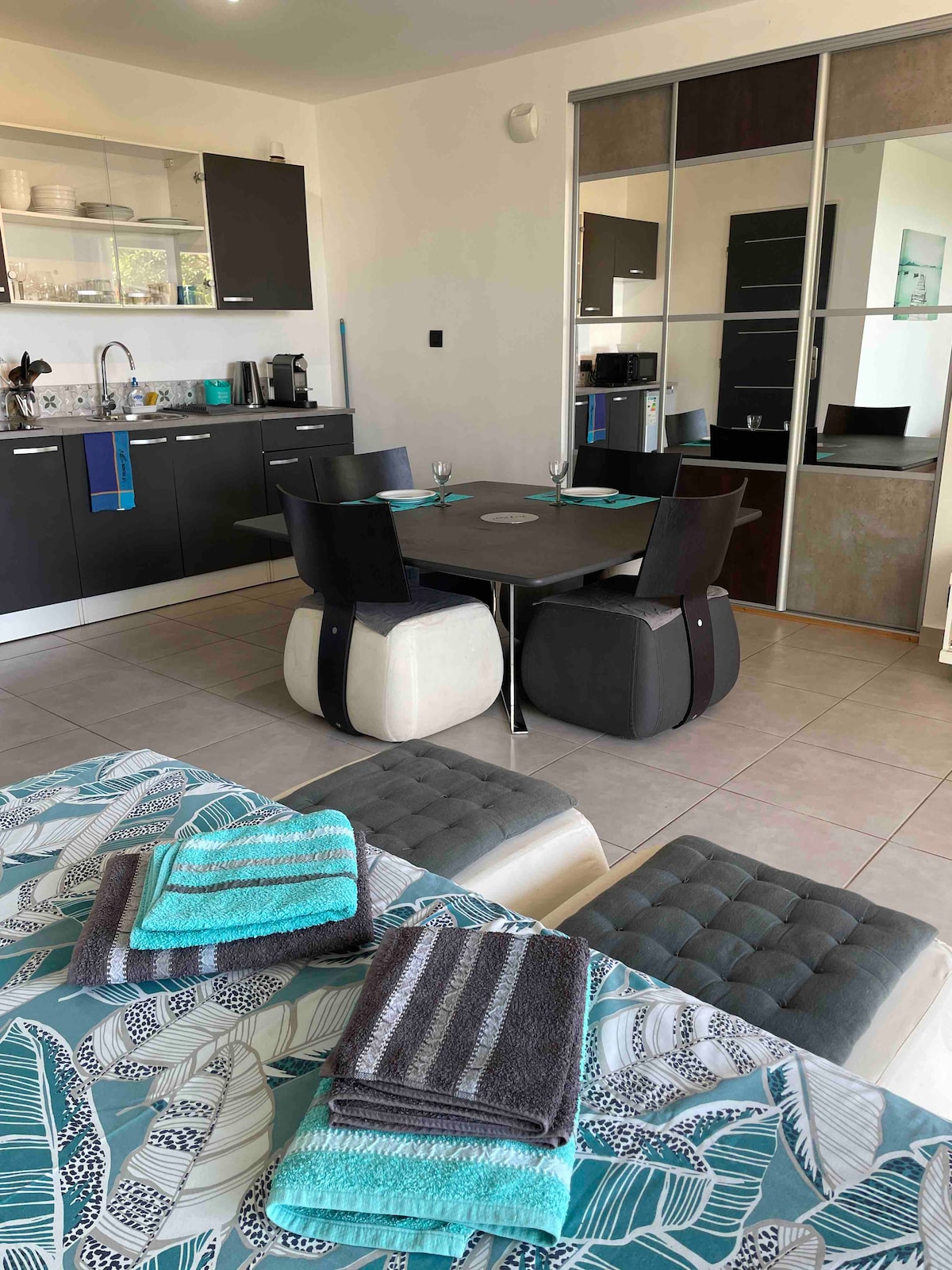 Vi, Yvette og Eric, er et par og har vært gift i 32 år, og vil være til din disposisjon under oppholdet. Vi ønsker velkommen i studioet vårt som ligger i en blindgate, pent innredet for 2 personer, i en frodig hage. Boligen vår ligger i nærheten av alle fasiliteter som universiteter, butikker, en bussholdeplass, og vi ligger mindre enn 15 minutter fra flyplassen. Starten på turstiene ligger 3 km unna, mot sjøen eller mot fjellet.