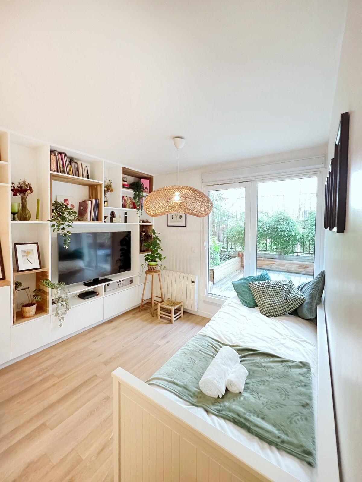 Opplev det beste av det vestlige Paris til rytmen av naturen som omgir deg. Nyt et privilegert levende miljø, svært nær Paris (5 km) og i hjertet av en bemerkelsesverdig arv. I en fullstendig renovert villa som er typisk for 1930-tallet, ble denne 40 m2 store leiligheten designet i harmoni med omgivelsene. Romslig og komfortabelt, det har blitt redesignet i en verkstedånd, med edle materialer. Den er forlenget av en terrasse med trekledd terrasse.