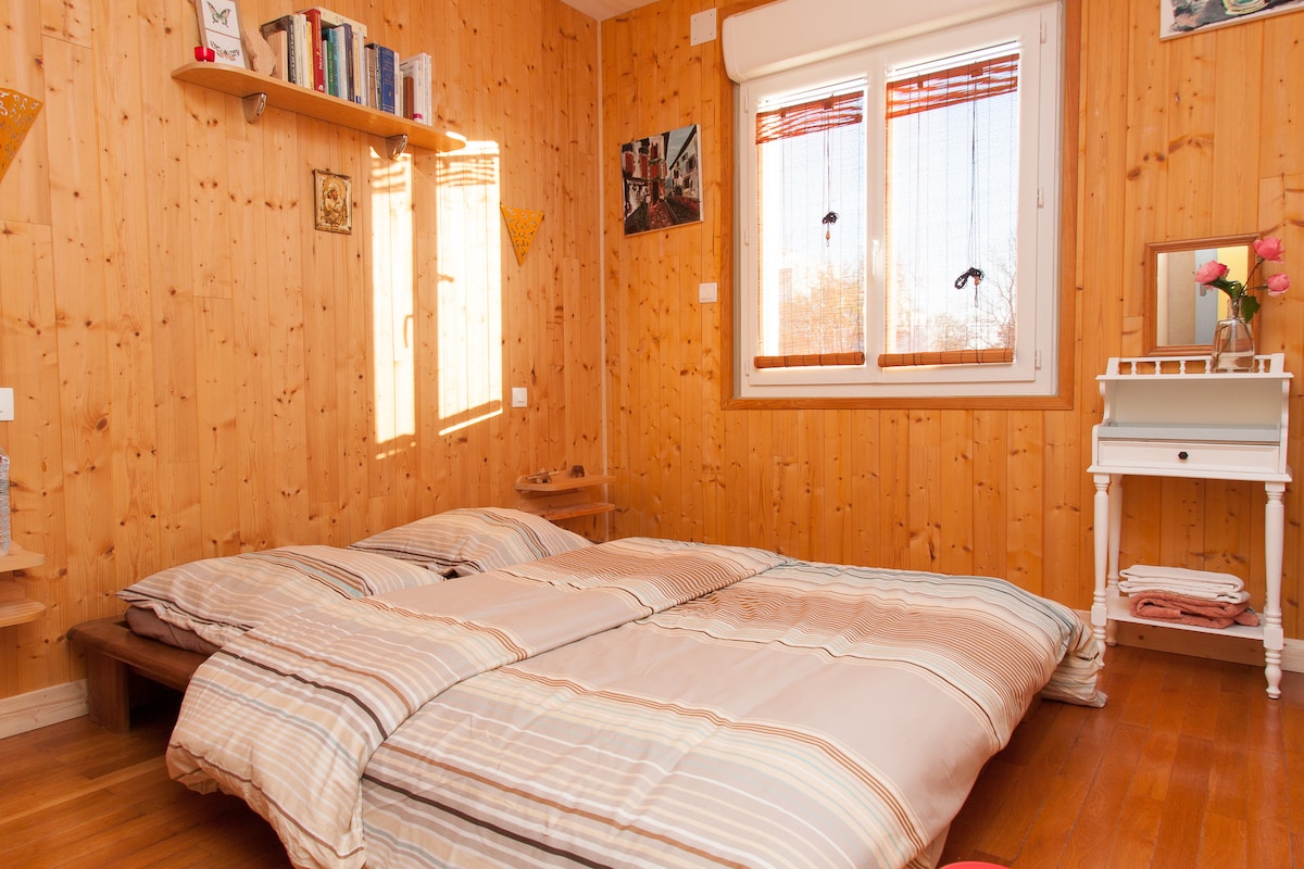 Privat rom i et kunstnerhus som ligger i nærheten av Place Choiseul. Rommet ligger i andre etasje i huset, det er veldig romslig. Buss- og sporvogn stopper på 50 meter, Old Tours på 15 minutters gangavstand, vakker spasertur over Loire. Delt bad (første etasje) og toalett. Plass til å slappe av, trene (tatamier..) eller meditere. Mulighet for oppvarming av en rett. Sengetøy og håndklær er tilgjengelig. Trådløst nettverk, bøker.